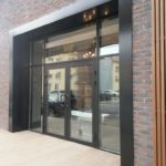 Маятниковые двери используются в больших местах, таких как гостиницы и банки. Преимущества алюминия в том, что он относительно легкий и соответствует стилю фасада. Небольшой вес алюминия также полезен при установке на раздвижные или распашные двери для удобства пользователей.